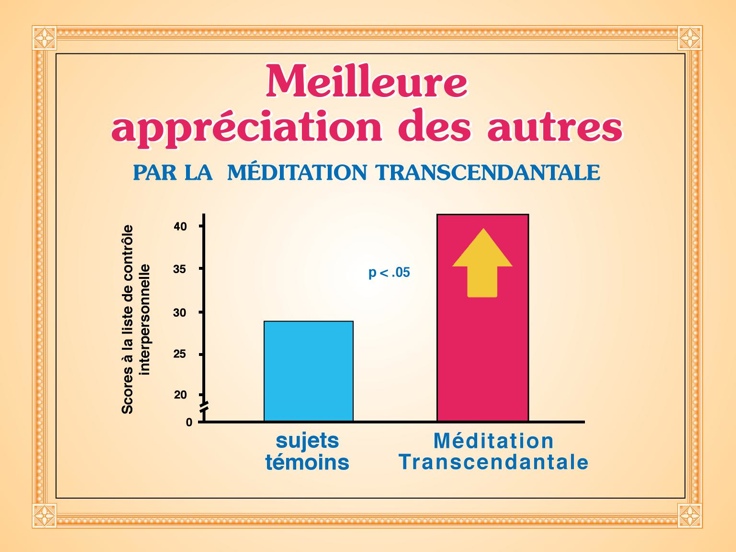 La conclusion de toutes les recherches sur la méditation et les techniques de relaxation dans le domaine de l’actualisation de soi, montre que la Méditation Transcendantale n’a pas d’équivalent dans le domaine du développement personnel.